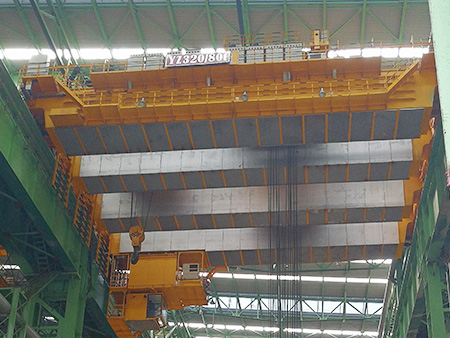 单梁桥式起重机是横架于车间、仓库和料场上空进行物料吊运的起重设备。由于它的两端坐落在高大的水泥柱或者金属支架上,形状似桥。单梁桥式起重机的桥架沿铺设在两侧高架上的轨道纵向运行,可以充分利用桥架下面的空间吊运物料,不受地面设备的阻碍。